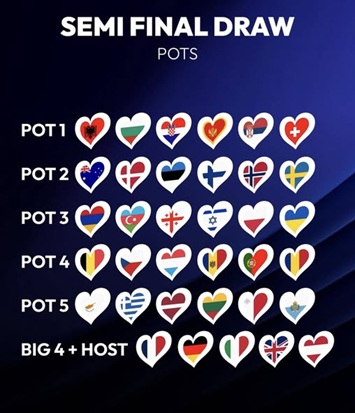 EBU revealed the pots of the countries participating in the allocation draw of the semi finals/ The Allocation draw is expected to be nest week in the Wien - The hosting city of ESC 2026. Tha allocation draw is expected to be on 12/1/26.