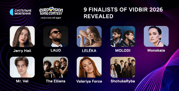 Ukraine revealed the 9 names of artists participating in Vidbir. The 10th song will be chosen by televoting and eill be revealed with the other 9 songs on January 2026.